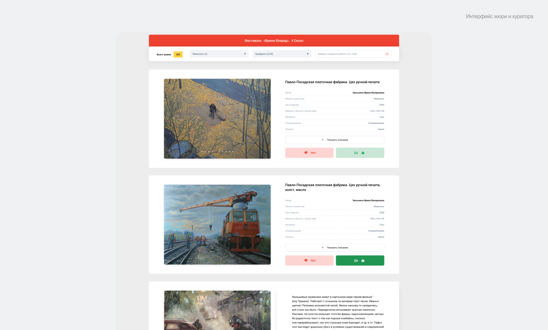 этапом куратор выставки на основании собранной статистики голосования назначает шорт-лист номинантов.