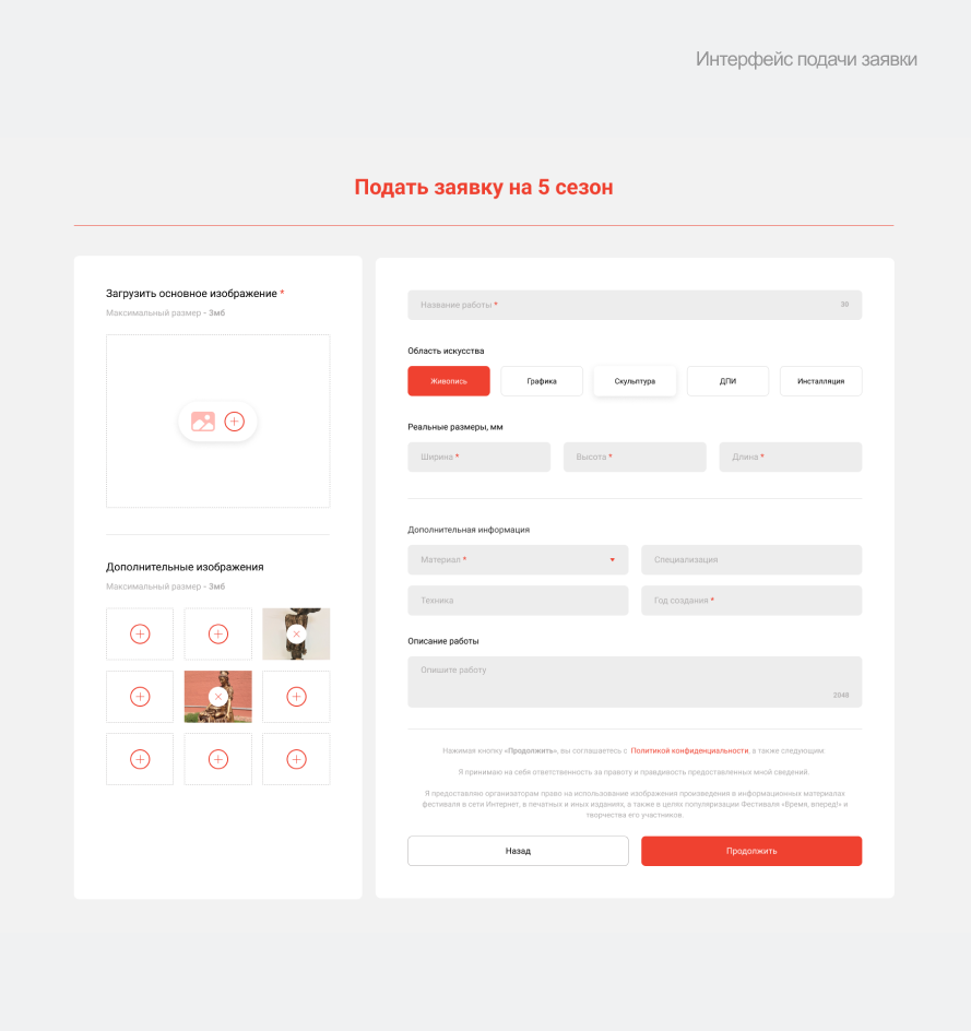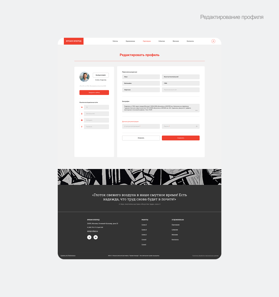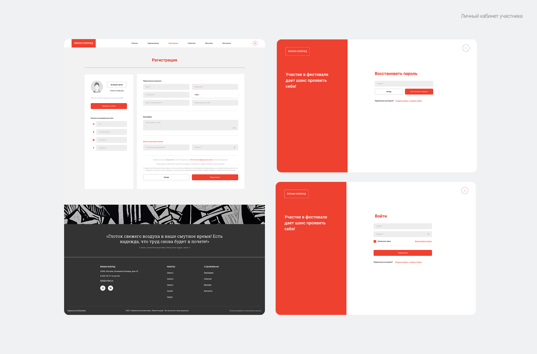 Разработка frontend и backend части личных кабинетов участников и жюри фестиваля